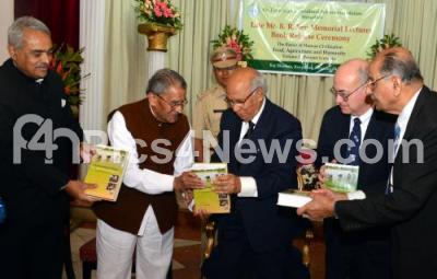 Photo Caption : Governor HR Bhardwaj with MV Rajashekharan, Former Union Minister, Dr Peter Kenmore, FAO representative and others seen releasing the Basic of Human Civilization, Food, Agriculture and Humanity at Raj Bhavan, in Bangalore on Monday 4th February 2013