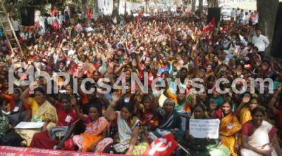 Photo Caption : Members of Communist Party of India seen protesting to fulfill various demands on issues related to Dalits at Freedom Park, in Bangalore on Tuesday 12th February 2013