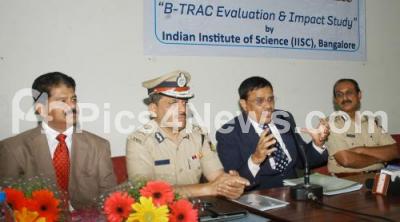 Photo Caption : Prof TG Sitaram, Chairman, Indian Institute of Science addressing with Jyothi Prakash Mirji, Police Commissioner, MA Saleem Ahmed, Additional Commissioner of Police, during the Seminar on B Trac Evaluation and Impact Study at Police Commissioner Office, in Bangalore on Wednesday 13th February 2013