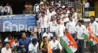 Event Description : Members of North, Central and South Parliament Youth Congress protesting against Karnataka Food and Civil Supply Department, in Bangalore on Friday 15th February 2013
