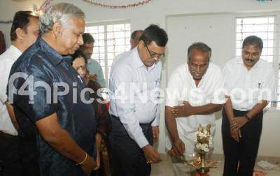 Photo Caption : KM Nandish, Chairman, MSIL with Harikumar Jha, IFS, MD, MSIL, Vijay Kumar,, General Manager, Finance and others seen lighting lamp to inaugurate the Mysore Sales International Limited at Gandhi Nagar, in Bangalore on Friday 15th February 2013