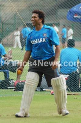 Photo Caption : Sachin Tendulkar in action, during the practice session for Australian series at National Cricket Academy, in Bangalore on Saturday 16th February 2013