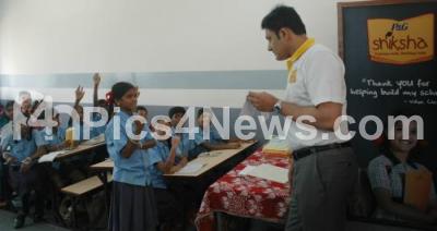 Event Description : Anil Kumble, President, KSCA dons a teachers hat to celebrate P and G Shiksha Diwas and pledged his support to the cause of helping marginalized children empowering them with Right to Education at Government High School, Whitefield, in Bangalore on Tuesday 19th February 2013