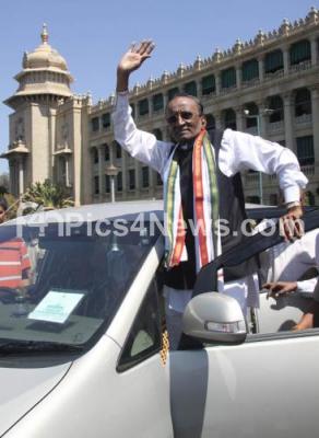 BJP MLA Shankar Linge Gowda, departing after submitting the resignation letter to the Assembly speaker KG Bopaiah, at Vidhana Soudha, in Bangalore on Saturday 23rd February 2013