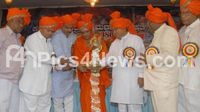 Photo Caption : Ananth Kumar, MP with Govind Karjol, Minister, Guru Sureshananda Bharatji and others lighting lamp to inaugurate the 386th Birth Anniversary of Chatrapati Shivaji, organized by Karnataka Kshatriya Maratha Parsihath at Ramanashree Auditorium, in Bangalore on Sunday 24th February 2013