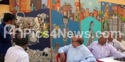 Photo Caption : Ejaz Ahmed Sait with Yellappa Reddy, Environmentalist and others wathing out the installed murals, during the Awareness programme on waste management at Freedom Park, in Bangalore on Tuesday 26th February 2013