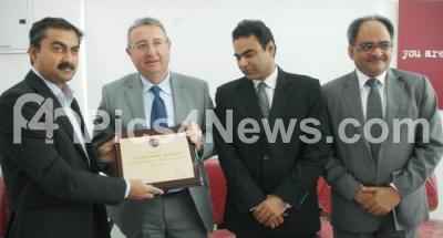 Photo Caption : Premanand R Shenoy, MD, Prerana motors presents memento to Enrico Atanasio, Managing Director, Fiat Group, during the Fiat Group Exclusive Dealership Inauguration, also seen Nagesh Basavanahalli, MD, Chrysler and Ravi Bhatia, Vice President, Fiat Group at Vecto Motors, Singasandra, in Bangalore on Saturday 2nd March 2013