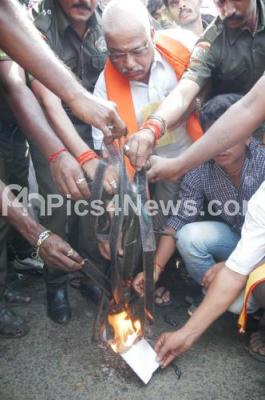 Event Description : Members of Karunada Simha Sene burning the Negatives of Ayodhyapuram Photos, during their protest at SBM Circle, in Bangalore on Saturday 2nd March 2013