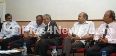 Photo Caption : Dr TSR Prasad Rao, Former Director, Indian Institute of Petroleum, Dehradun with Dr S Kulkarni, Pincipal, MSR Institute of Technology, SM Acharya, Chief Executive, GEF and Dr AB Halgeri, Director, PISR seen discussing during the Workshop on Oil and Gas Focal Theme, Recent Trends in Upstream and Downstream Processing at MS Ramaiah Institute of Technology, in Bangalore on Thursday 7th March 2013