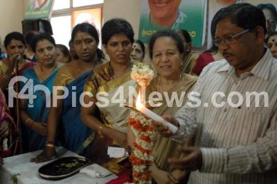 Photo Caption : G Parmeshwar, KPCC President and Rani Satish, Former Minister and others congress members seen lighting lamp to inaugurate the International Womens Day Celebration at KPCC, in Bangalore on Friday 8th March 2013