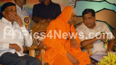 Photo Caption : Sri Shivarathri Deshikendra Mahaswamiji interacting with Jagadish Shettar, Chief Minister, during the Kriyasheela Book Release programme, also seen V Somanna at Town Hall, in Bangalore on Friday 8th March 2013