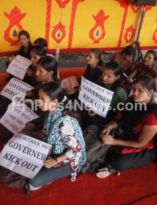 Photo Caption : Members of Vishwavidyalaya Gaurava Samrakhshana Samithi seen protesting against governor HR Bhardwaj, at Freedom Park, in Bangalore on Thursday 14th March 2013