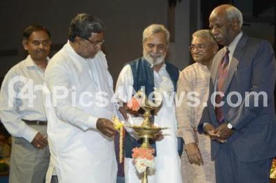 Photo Caption : Siddharamaiah, Opposition Leader with UR Ananthmurthy, Jnanpith Awardee seen lighting lamp to inaugurate the Seminar on Present Status of Deprived Section at Jnanajyothi Auditorium, in Bangalore on Wednesday 20th March 2013