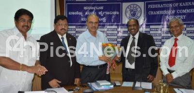 Photo Caption : S Shankaranarayana, IAS, Director, Department of Agriculture Marketing, Gok being felicitated by BL Shankarappa, Executive Chairman, APMC Committee, FKCCI K Shiva Shanmugam, President, FKCCI and S Sampathraman, Vice President, FKCCI, during the Interactive meeting at FKCCI, in Bangalore on Wednesday 20th March 2013