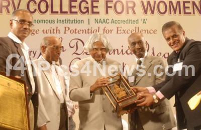 Event Description : APJ Abdul Kalam, Former President of India being felicitated by Panduranga Shetty and others, during the Valedictory of Decennial Celebrations of NMKRV College for women, at premises, in Bangalore on Friday 22nd March 2013