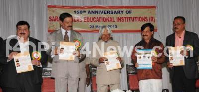 Photo Caption : APJ Abdul Kalam, Former President of India with Dr B Suresh, Vice Chancellor, JSS University, SA Ramdas, Mysore District incharge and others seen releasing the Pharma Bullet Brochures, during the 150th Anniversary of Saradavilas Educational Institutions at Saradavilas Centenary Hall, in Mysore on Saturday 23rd March 2013