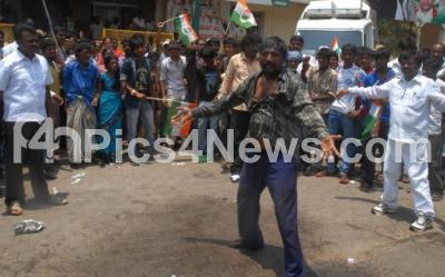 Photo Caption : Protestor tries to immolate self by pouring Kerosene , during their demand for assembly elections ticket for PN Krishnamurthy at KPCC Office, in Bangalore on Monday 1st April 2013