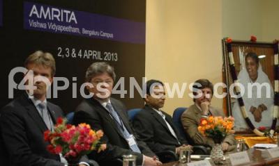 Photo Caption : Antoine Evrard, Minister Counselor, Deputy head of Mission Embassy of HH the King of Belgians to India with Dr P Venkatrangan, Vice Chancellor, Amrita University, Jelle Nijdam, Counsellor for Science and Technology of the Embassy of Kingdom of Netherlands to India and others seen during the Samyoga, Europe and India come Together for International Research Forum at Amrita University, in Bangalore on Tuesday 2nd April 2013