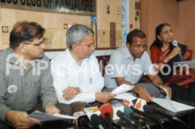 Event Description : Trilochan Shastry with Vasudev Sharma, Kathyayani Chamraj, Harish Narasappa addressing media on Karnataka Election Watch at Press Club, in Bangalore on Thursday 4th April 2013