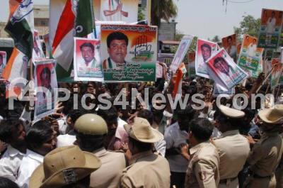Event Description : Supporters of various congress leaders protest, demanding for the Ticket for Assembly Elections at KPCC, in Bangalore on Thursday 4th April 2013
