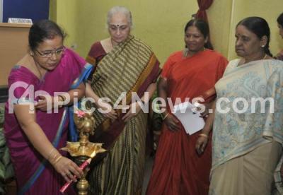 Event Description : Dr BL Bhagyalakshmi, Director, Department of Collegiate Education with Dr Shakuntala Katre, Advisor, Quality Assurance in Higher Education and Dr TL Shantha, Director, MLACW and others seen lighting lamp to inaugurate the National Conference on Benchmarking A Quality Initiative in Higher Education at Maharani Lakshmi Ammanni College for Women, in Bangalore on 5th April 2013