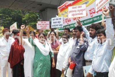 Members of Karnataka State Veerashaiva Vedike protest, demanding to keep CBI Enquiry against the Chauli Matha seers Immolation at Gandhi Statue, Anand Rao Circle, in Bangalore on Wednesday 10th April 2013