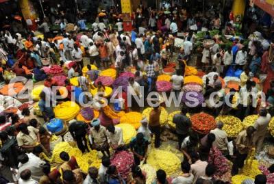 Photo Caption : People seen purchasing various Festival Items ahead of Ugadi at KR Market, in Bangalore on Wednesday 10th April 2013
