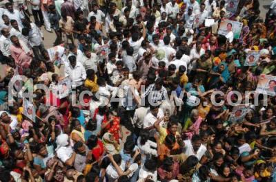 Supporters of Sushma Rajgopalareddy Protest, demanding for ticket for Assembly Elections, at KPCC, in Bangalore on Tuesday 16th April 2013