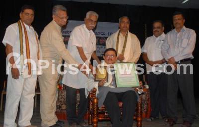 Photo Caption : Pundalika Halambi, President, Kannada Sahitya Parishath with K Sudhakar Shetty and others felicitated various beneficiaries, during the Bisu Habba Mattu Taulavashree Award Ceremony at Nayana, in Bangalore on Sunday 21st April 2013