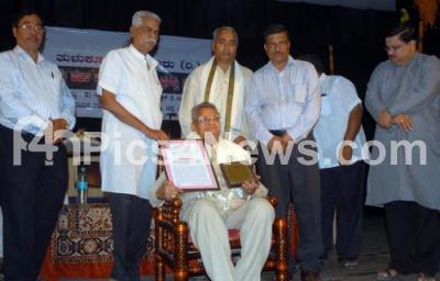 Photo Caption : Pundalika Halambi, President, Kannada Sahitya Parishath with K Sudhakar Shetty and others felicitated various beneficiaries, during the Bisu Habba Mattu Taulavashree Award Ceremony at Nayana, in Bangalore on Sunday 21st April 2013