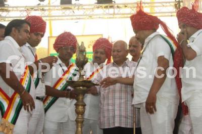 Photo Caption : Devotees light lamp to Inaugurate Mahaveer Jayanthi Celebrations at Freedom Park, in Bangalore on Tuesday 23rd April 2013