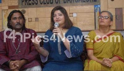 Photo Caption : Vasundhara Das, Singer and Actress addressing media with Meer Mukhtiyar Ali, during the press meet at Press Club, in Bangalore on Wednesday 24th April 2013
