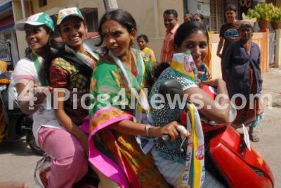 Photo Caption : Supporters campaign for Shobha Karandlaje, KJP Candidate, Rajajinagara Constituency for Assembly Elections at Shivanahally, in Bangalore on Wednesday 1st May 2013
