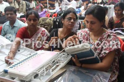 Electoral Officers checking the Electronic Voting machines ahead of Karnataka Assembly Elections at Bapuji Pre University College, Magadi Road, in Bangalore on Saturday 4th May 2013