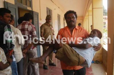 Photo Caption : Voter carrying a physically challenged, after casting his vote for Karnataka State Elections at a polling station in Doddaballapura on Sunday 5th May 2013