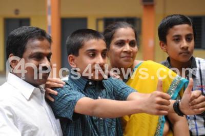 Photo Caption : Sudheendra, SSLC Topper from Vijaya College wishes all the best to students at College premises, in Bangalore on Monday 6th May 2013