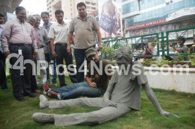 Photo Caption : Ameer Moslemzadeh, CKP Student, Iran posing with his Sculpture, during the inauguration of Boulevard at MG Road, in Bangalore on Monday 6th May 2013