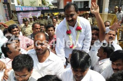 Event Description : BJP Candidate Satish Reddy being lifted by Supporters after winning from Bommanahalli Constituency in Karnataka Assembly Elections, in Bangalore on Wednesday 8th May 2013