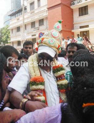 Event Description : Congress Candidate RV Devaraj celebrates with supporter after winning from Chickpet Constituency in Karnataka Assembly Elections, in Bangalore on Wednesday 8th May 2013
