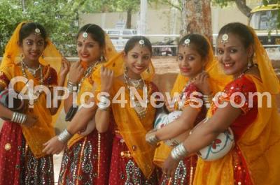 Photo Caption : Students pose during the Nrutye Gana Sambhrama Programme, organized by BSNL Pratibha Prothsaha Samiti at Ravindra Kalakshetra, in Bangalore on Tuesday 14th May 2013