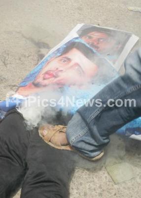 Event Description : Cricket fans protest and burnt the effigy of Rajasthan royal players and Kerala pacer Sreeshanth, Ajit Chandila and Ankeet Chavan who have been arrested for Spot fixing in the Indian premier league, the fans where protested against the IPL and where demanding to ban IPL, in Bangalore on Thursday 16th May 2013