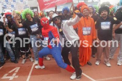Photo Caption : Participants in different costumes entertain at the TCS World 10K Bangalore 2013 at Kanteerva Stadium, in Bangalore on Sunday 19th May 2013