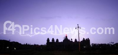 Photo Caption : Thunderbolt Lightning above Mysore Palace as Heavy Rains lashed Out Mysore City on Monday 20th May 2013