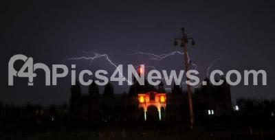 Photo Caption : Thunderbolt Lightning above Mysore Palace as Heavy Rains lashed Out Mysore City on Monday 20th May 2013