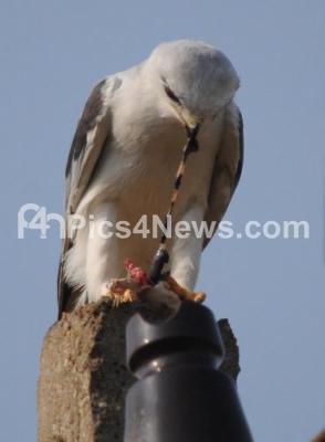 Photo Caption : Black Shouldered Kite having lunch after catching its prey, in Mysore on Tuesday 22nd May 2013