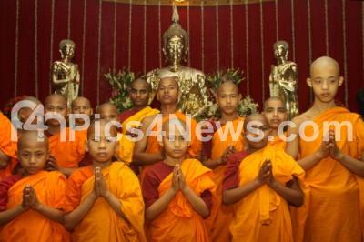 Young Buddhist Monks offering prayers on the eve of Buddha Purnima Festival Celebration at Maha Bodhi Society, in Bangalore on Saturday 25th May 2013