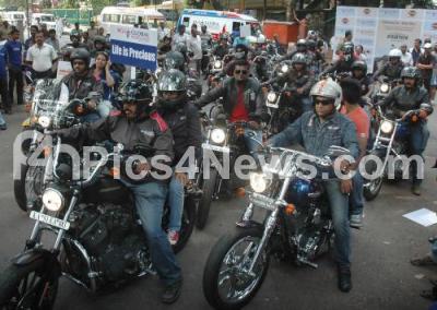 Photo Caption : People partake in Bikeathon, an Awareness Campaign for Tobacco Free Society and ill effects of Tobacco Consumption, organized by BGS Global Hospital, at Cubbon Park, in Bangalore on Sunday 26th May 2013