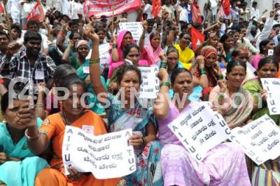 AITUC members protesting to fulfill their demands at Town Hall, in Bangalore on Monday 27th May 2013