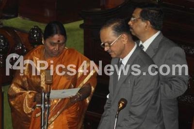 Photo Caption : Y Ramakka, BJP, taking oath as New MLA, during the 14th Assembly Session at Vidhana Soudha, in Bangalore on Wednesday 29th May 2013