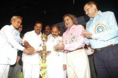Photo Caption : UT Khader, Health Minister with Dr Sharana Prakash Patil, Medical Education Minister, Madan Gopal, Principal Secretary, Health Department with Cancer Patient seen lighting lamp to inaugurate World Anti Tobacco Day Programme at Nimhans Convention Centre, in Bangalore on Friday 31st May 2013